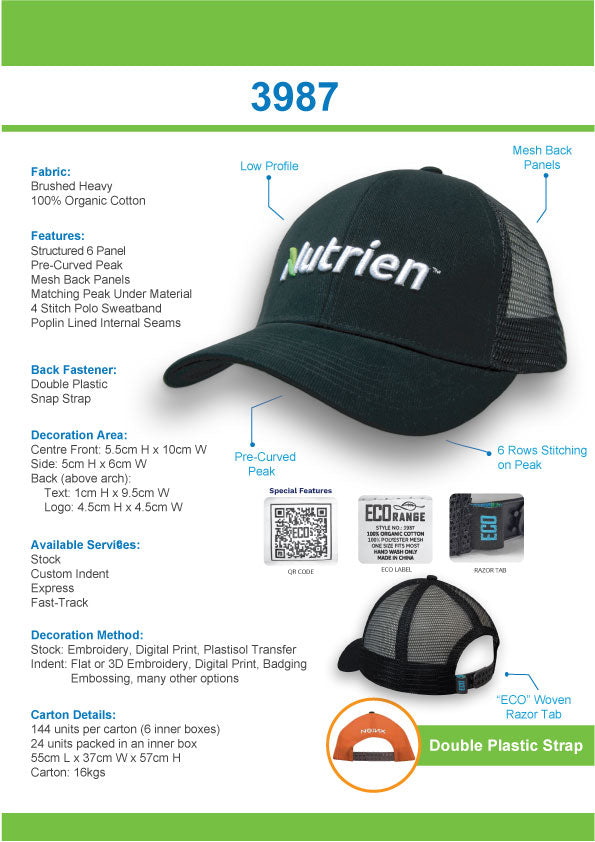 Headwear- Organic brushed Heavy Cotton/Mesh Back Cap - 3987