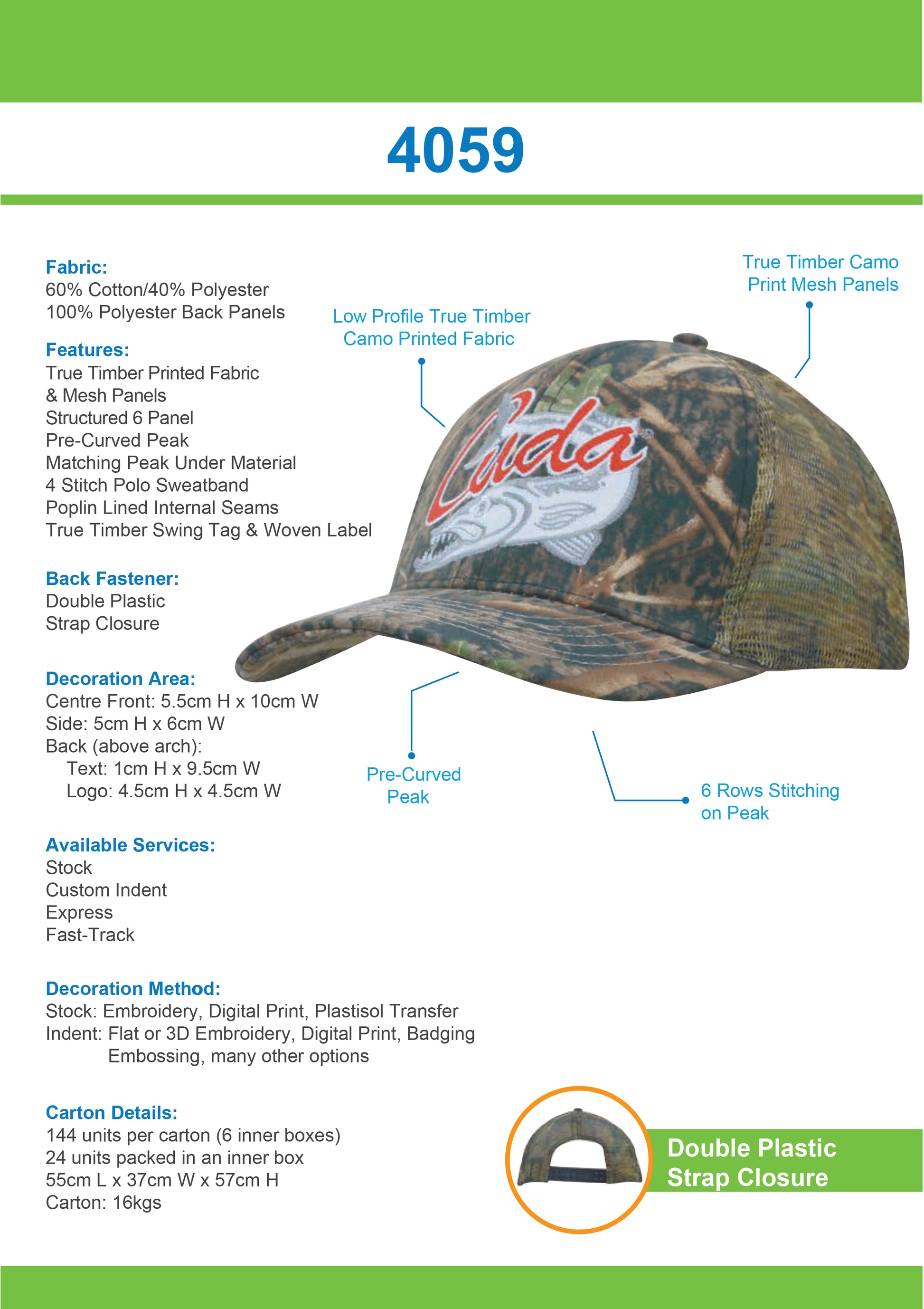 Headwear - True Timber Camouflage with Camo Mesh Back-4059